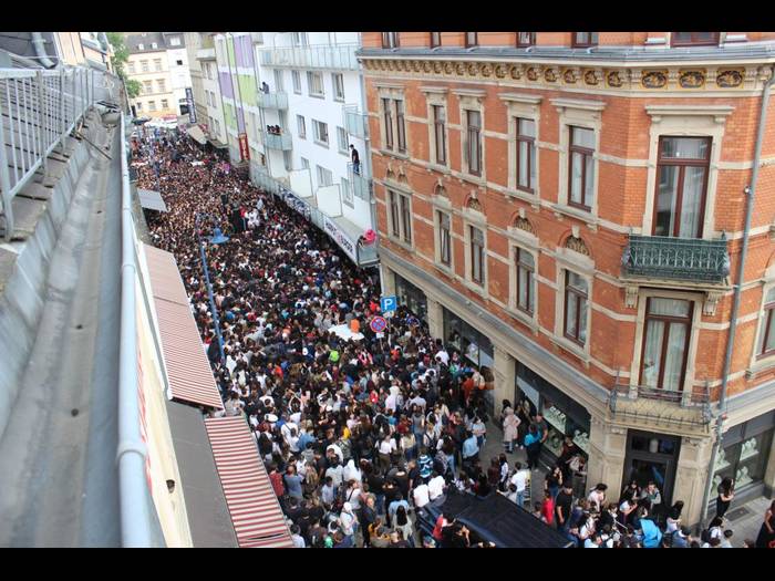 الكثير من الشباب الحاضرين جاءوا إلى المكان حتى من مدن بعيدة كدريسدن شرق البلاد، لرغبتهم في حضور الحفل في المقام الأول، وهكذا وجد المغني والعاملون في المطعم حتى قبل ساعات من موعد الافتتاح أنفسهم أمام آلاف الشباب الذين غص بهم شارع فيلريتزشتراسه.