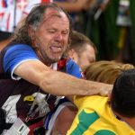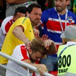 انخرط مشجّعون برازيليون وصربيون في نزاع عنيف، خلال المباراة التي جمعت بين منتخبيهما في موسكو، ضمن فعاليات كأس العالم 2018.