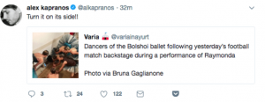 تركْن الرقصة وتابعن منتخبهنّ.. انتشار صورة لراقصات باليه روسيات وهنّ يشاهدن مباراة فريقهن ضد إسبانيا