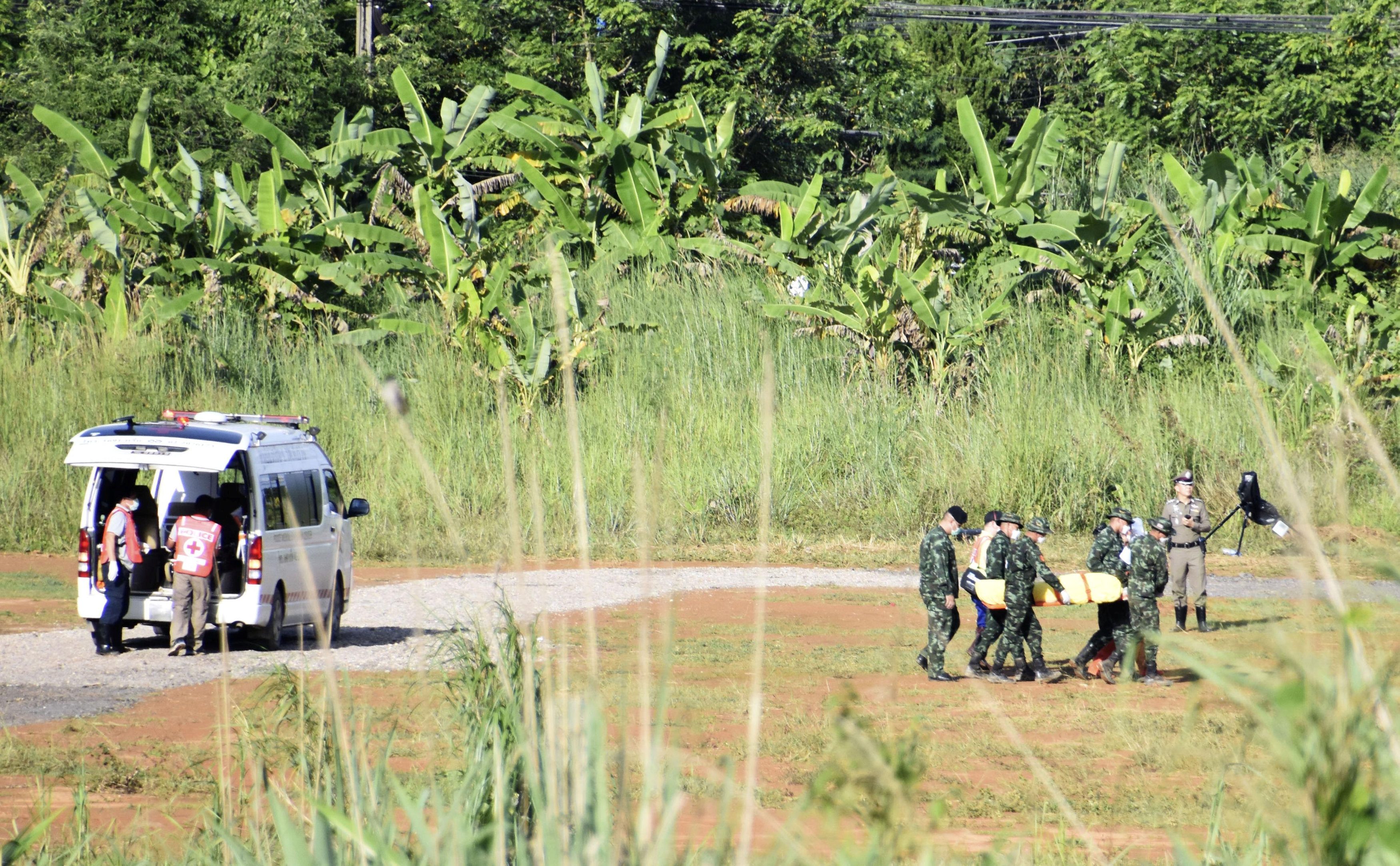 إنقاذ جميع فتية الكهف Leave a Comment / By أسامة أبوضهير / يوليو 10, 2018 موظفو الانقاذ يسيرون بحمالة يعتقد أنها تحمل فتى تم إنقاذه من كهف