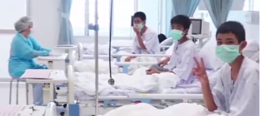 أول ظهور لـ”أطفال الكهف” التايلانديين وهم يتعالجون في المستشفى (فيديو)
