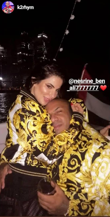 ونشر مغني الراب كريم الغربي، المعروف باسم كادوريم، صورةً له برفقة نسرين بن علي، على سفينة وسط البحر، عبر قصة (Story) على حسابه على إنستغرام.