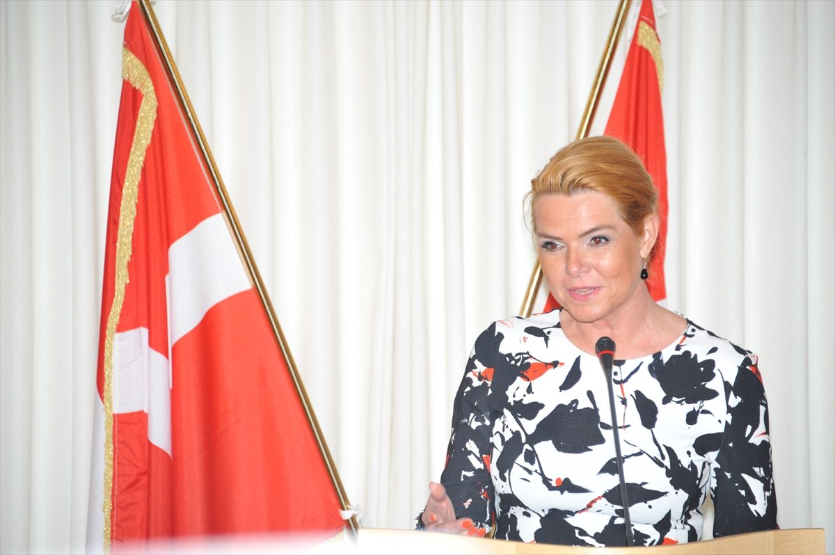 وزيرة الهجرة والاندماج الدنماركية، إنغر ستويبرغ، تبدأ تنفيذ القرار بمصافحة 9 أشخاص تمت الموافقة على منحهم الجنسية
