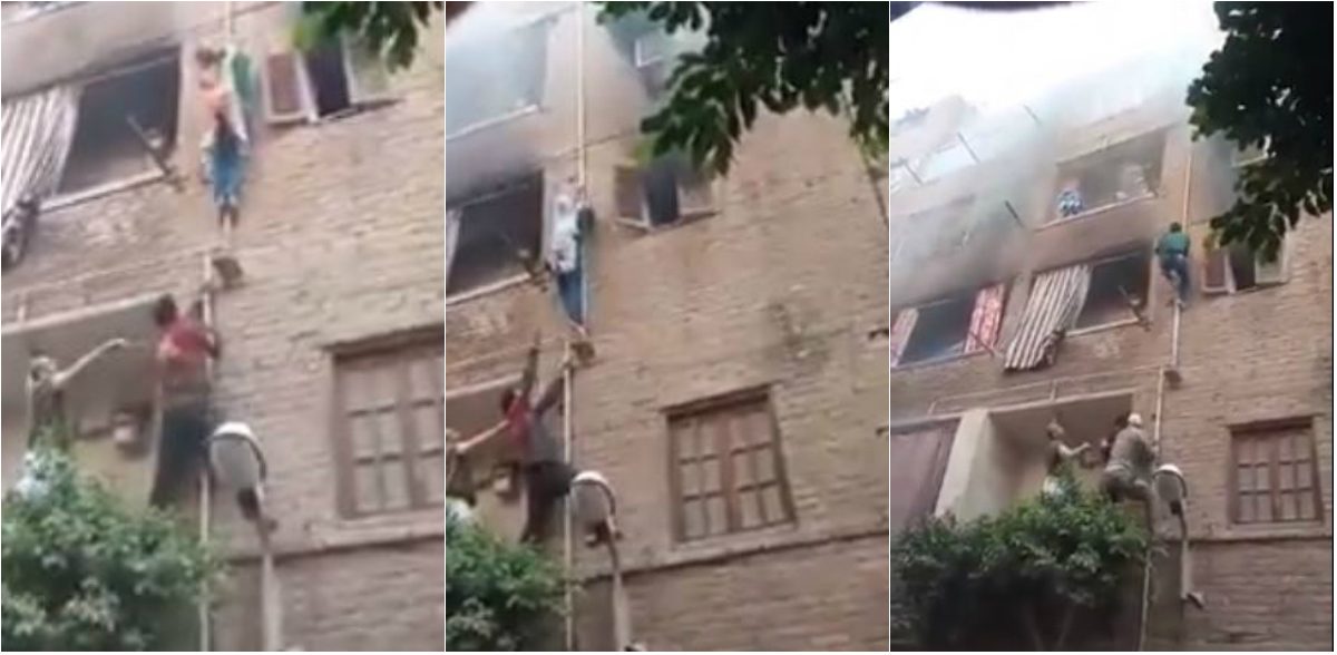 أنقذ مصري 3 أطفال بطريقة مذهلة عندما تسلق مبنى من 3 طوابق بالقاهرة، في حين كانت النيران تشتعل والناس يتفرجون بالأسفل.