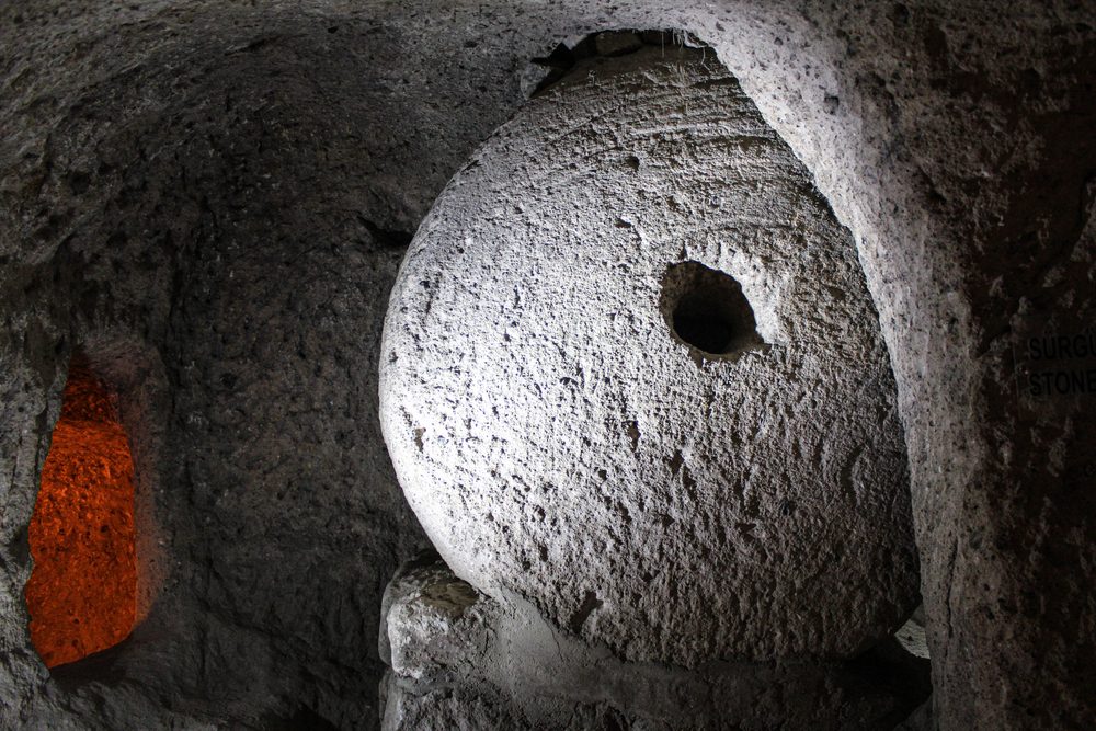 يمكن التحكم بهذه الصخور وتحريكه،ا لكن من الداخل فقط؛ بسبب فتحة تحت الصخرة تساعد في سهولة التحكم بها، تحت الصخور توجد أنفاق يبلغ طولها 8 كيلومترات، إذ تقود إلى مدينة أخرى تحت الأرض تسمى “كابادوسيا”.