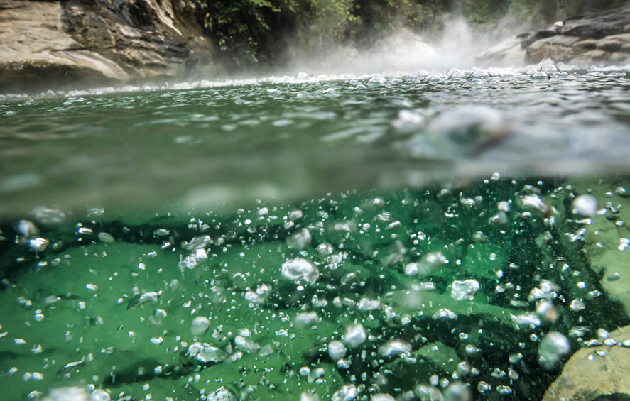 عند الاقتراب من التقاء النهرين تشعر بارتفاع بسيط في درجة حرارة المياه؛ إذ تصبح تدريجياً بحرارة الحمام الساخن التي باستطاعة الإنسان تحمّلها.