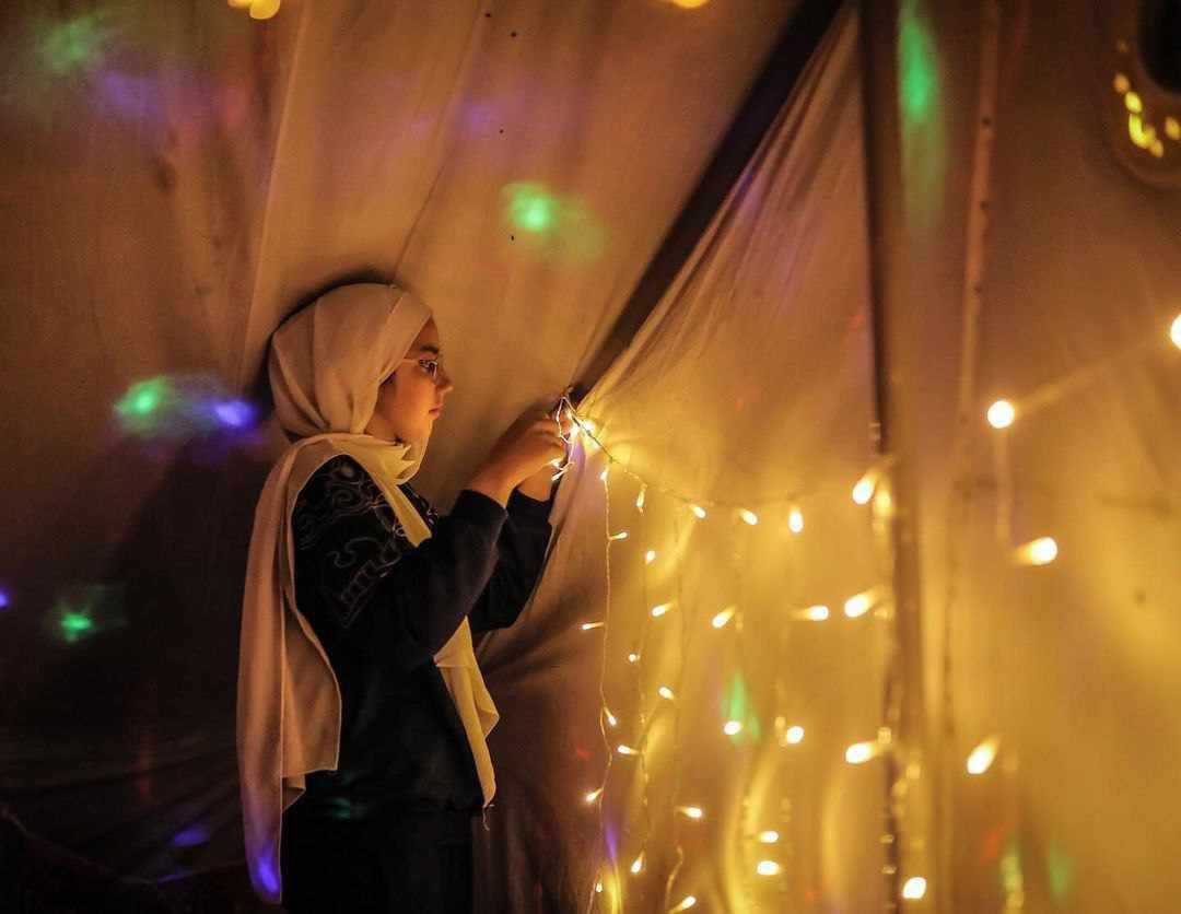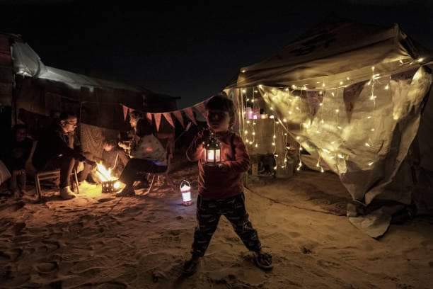 وفي الصور التي تم تداولها بشكل واسع عبر مواقع التواصل الاجتماعي، يظهر الأطفال وهم يلعبون بالفوانيس المُضاءة وأسلاك النور الملون والزينة الرمضانية وهي تزين الخيام، وتزيين جدران الشوارع بعبارات التهاني لاستقبال شهر رمضان خلال أيام.