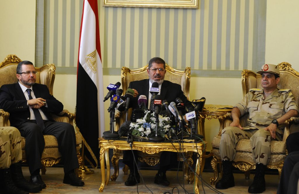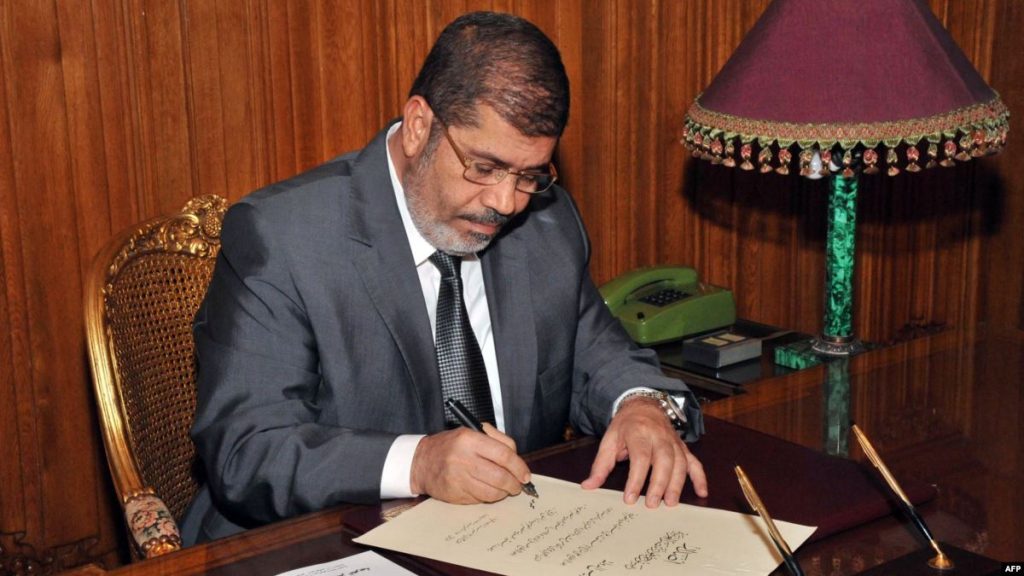 وهمٌ اسمه الدولة “أدار الرئيس محمد مرسي (وَهْماً اسمه الدولة)، بناءً على حقيقة، اسمها الانتخابات النزيهة”. وبعبارة أخرى: “الانتخابات النزيهة