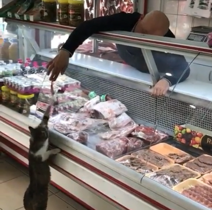 كلما شعرتْ بالجوع ذهبت إليه، يخيرها بين أنواع اللحوم ويتحدث إليها.. قصة القطة والجزار التركي