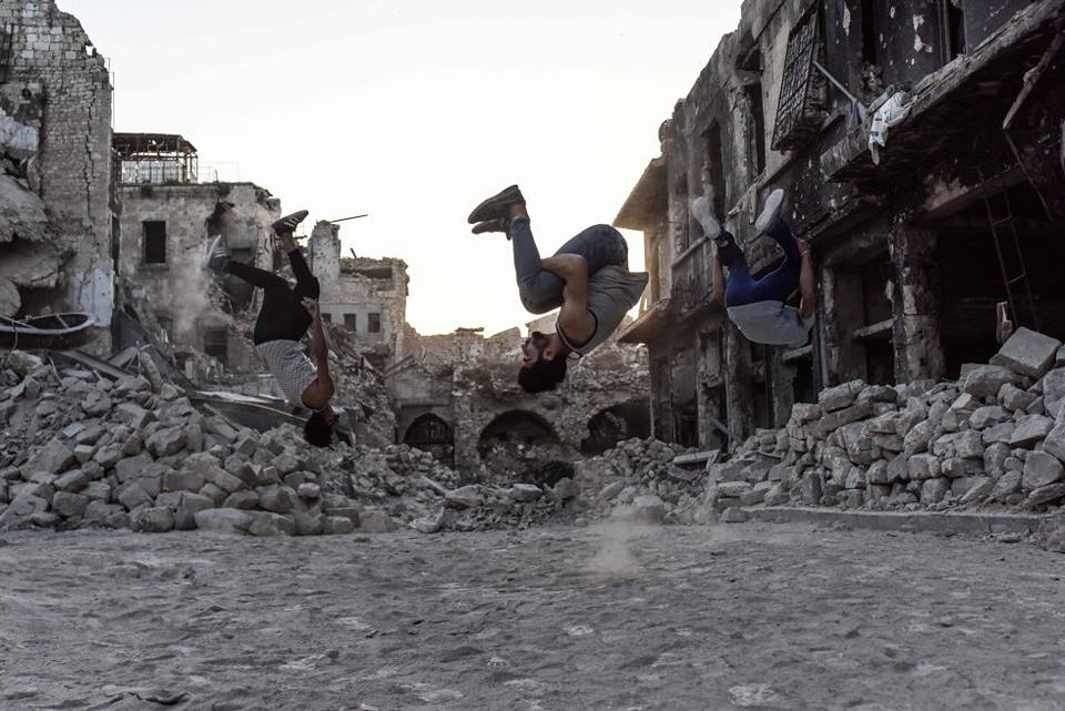 هم مجموعة من الشباب الحلبيين، يعشقون رياضة الباركور “الخطرة”