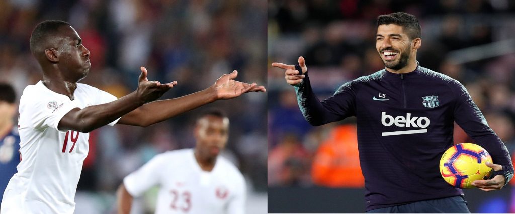 مقارنة كروية تبين الفارق بين مردود المعز علي نجم المنتخب القطري ومردود لويس سواريز مهاجم برشلونة الإسباني منذ انطلاق كأس أمم آسيا