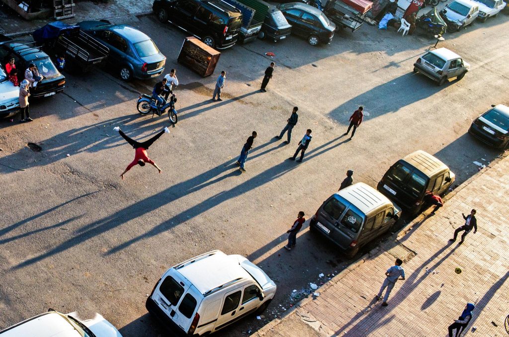 أسفل القبة الصفراء للمسرح الملكي بمدينة مراكش المغربية، وقف حشدٌ صغير من الناس يهتفون وهم يشاهدون، في ذهولٍ، بعض راقصي