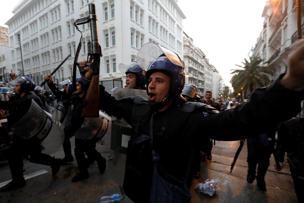 احتفلت عناصر من الشرطة الجزائرية، الجمعة 15 مارس/آذار 2019، عقب مظاهرات شعبية ضخمة تطالب برحيل الرئيس عبدالعزيز بوتفليقة، في مشهد