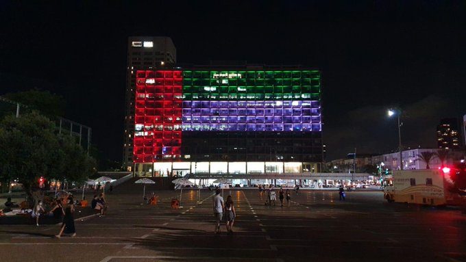 إضاءة مبنى بلدية تل أبيب بالعلم الإماراتي بعد إعلان أبوظبي تطبيع علاقاتها مع إسرائيل (فيديو)