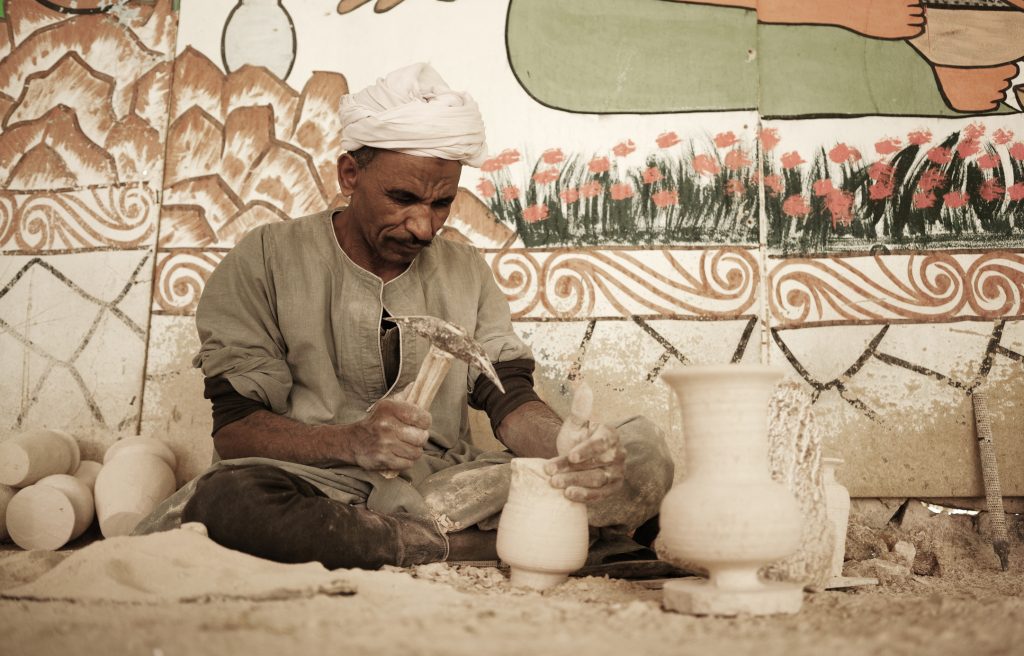 في نفس المكان الذي نحت فيه الفنانون الفراعنة تحفهم التي مازالت تذهل العالم، أسفل أشعة الشمس الحارقة، يجلس ممُسكاً بحجر