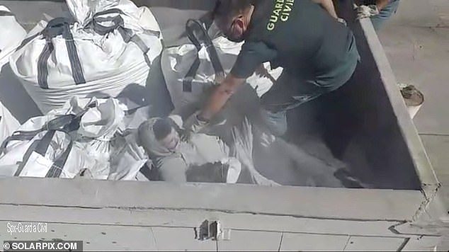 كشفت لقطات مصورة عن لحظة صادمة عندما عثر حرس الحدود الإسبان على مهاجر مغربي مختبئاً داخل كيس من الرماد السام.