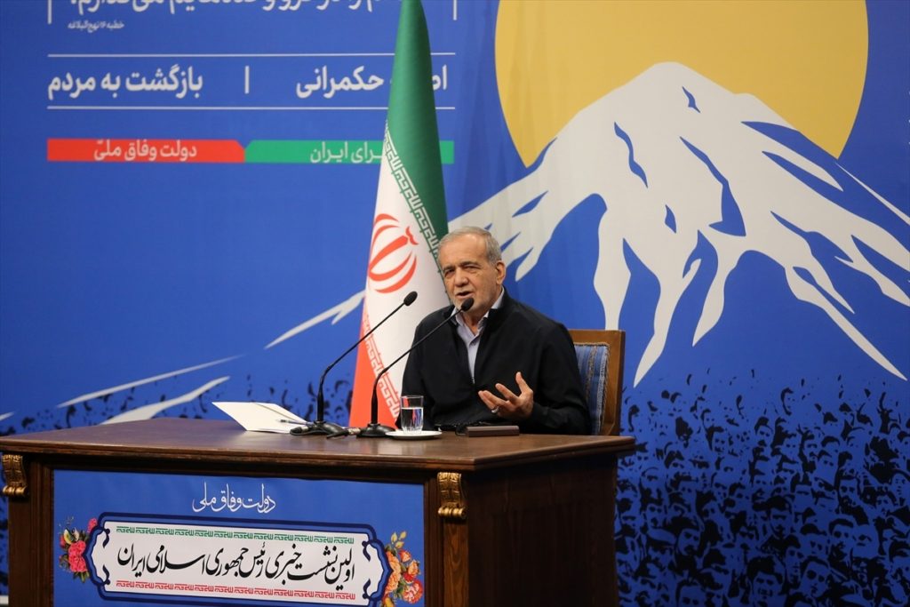 أثار الرئيس الإيراني مسعود بزشكيان، في أول مؤتمر صحفي له منذ توليه منصب رئيس الجمهورية، مواضيع عديدة داخلية وخارجية، لاسيما