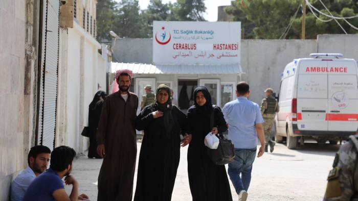 إنَّ علامات الأثر التركي حاضرةٌ في كلِّ مكانٍ ببلدة جرابلس السورية. يرتدي الأطباء أرديةً تحمل اسم وزارة الصحة التركية، وتتكدَّس