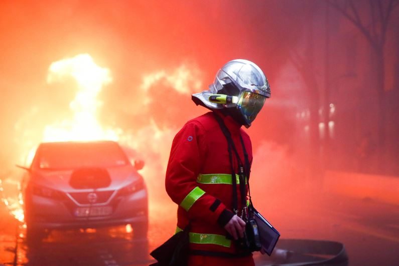 أطلق عشرات المحتجين المقنَّعين مقذوفات على شرطة مكافحة الشغب، وحطموا واجهات متاجر، وأشعلوا النار في سيارات خلال مظاهرة بالعاصمة الفرنسية،