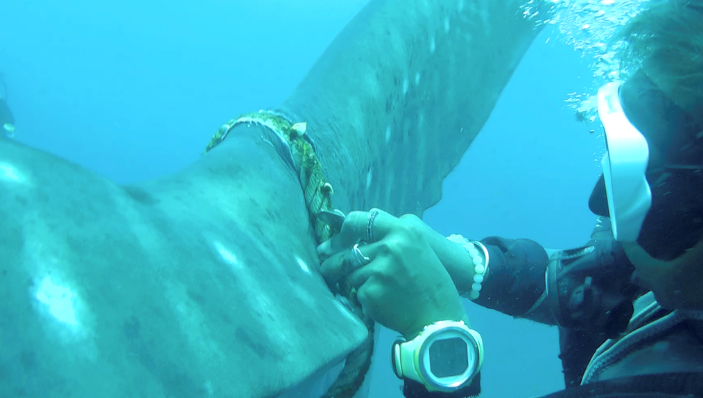 نشر غواصون في تايلاند، الثلاثاء 16 يونيو/حزيران 2020، شريطَ فيديو يوثّق لعملية محاولة إنقاذهم سمكة قرش كبيرة الحجم، كانت عالقة