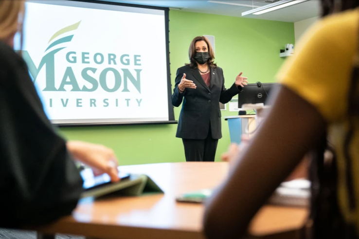 فاجأت طالبة في جامعة جورج مايسون الأمريكية، الواقعة في ولاية فيرجينيا، الثلاثاء 28 سبتمبر/أيلول 2021، نائبة الرئيس الأمريكي كامالا هاريس