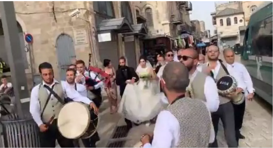 اختار زوجان فلسطينيان مقدسيان، الاحتفال بحفل زفافهما في باب الخليل بالقدس المحتلة، وتحديداً عند المدخل الغربي الرئيسي للبلدة القديمة، وقد