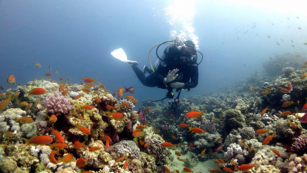 السماء صافية، والشمس مشرقة، والبحر فيروزي متلألئ. إنه يوم مثالي لاستكشاف أعماق البحر المحيطة بجزيرة رملية صغيرة في البحر الأحمر، وهي المنطقة التي تعد موطناً للسرطانات وعدد لا بأس به من طيور النورس.