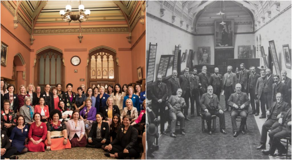 احتفلت عضوات في البرلمان النيوزيلندي بذكرى حصول المرأة على حق التصويت بإعادة إحياء صورة من العام 1905 التُقطت في برلمان