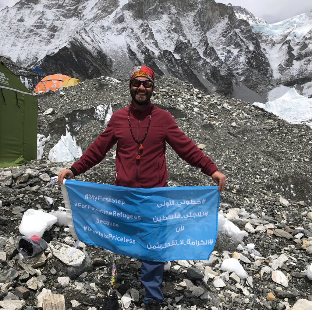 على قدمه الوحيدة، قرَّر اللاجئ الفلسطيني جراح الحوامدة أن يحقق حلمه، ويرد الجميل إلى المكان الذي علمَه، ولم يختر أسهل