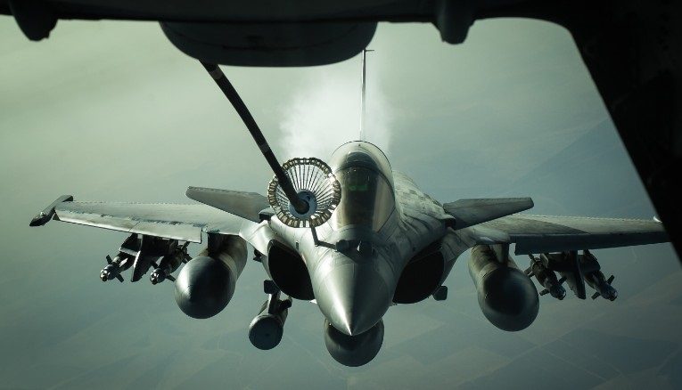 نشرت الرئاسة الفرنسية، السبت 14 أبريل/نيسان 2018، فيديو على صفحتها في موقع تويتر، قالت إنه لإقلاع طائرات “رافال” الحربية، بعد