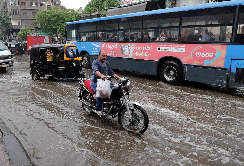 على الشاشة، يقف في يمين الصورة ضابط يمسك بجهازه اللاسلكي، ويبدو أنه يؤدي مهمته، وسط سيولٍ جرفت كرامة العاصمة، بجواره