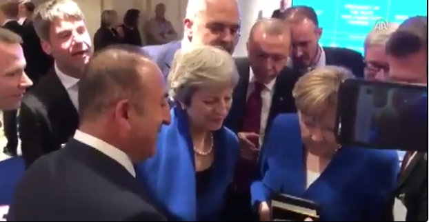 شاهد.. ميركل وأردوغان ورئيسة وزراء بريطانيا وهم يتابعون اللحظات الأخيرة لمباراة كرواتيا وإنكلترا