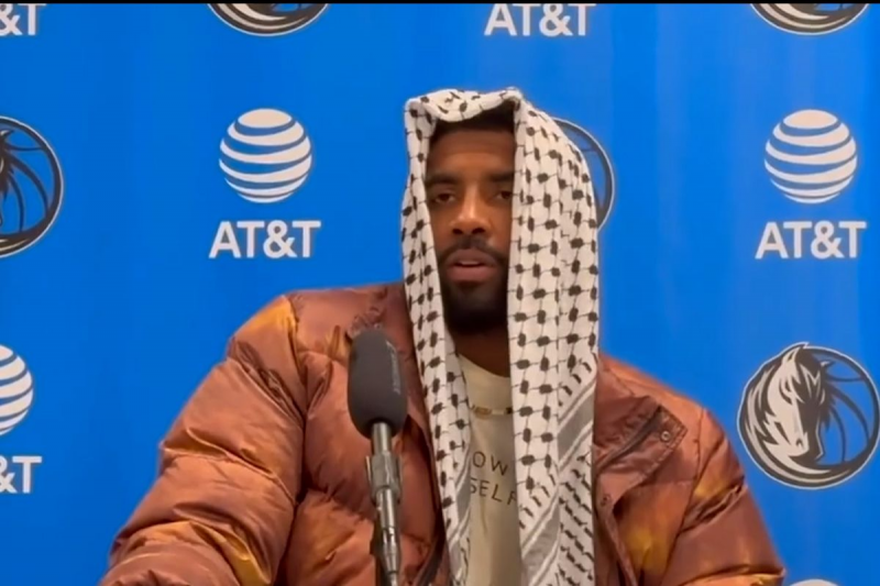 فاجأ النجم الأمريكي ولاعب كرة السلة كايري إيرفينغ، الذي يلعب لفريق دالاس مافريكس، الصحفيين بزيه الذي ظهو في المؤتمر الصحفي