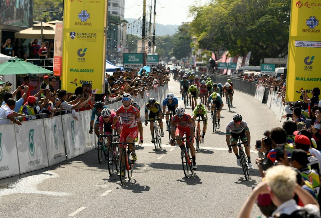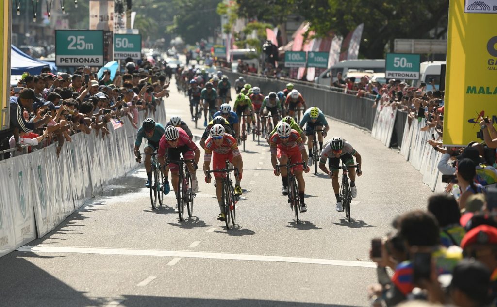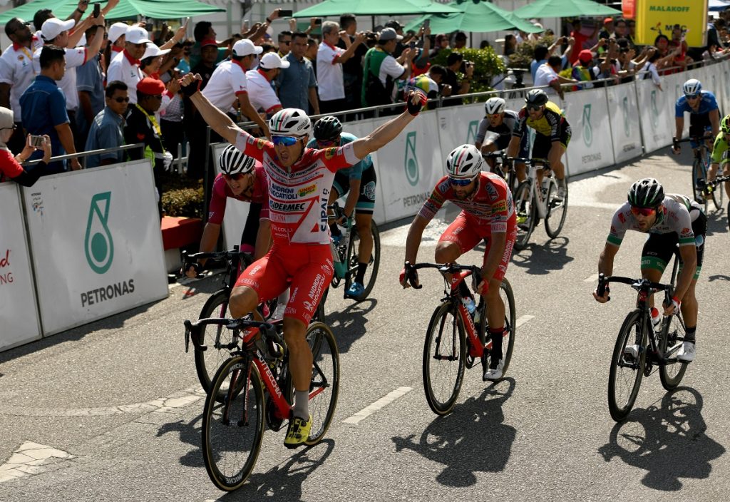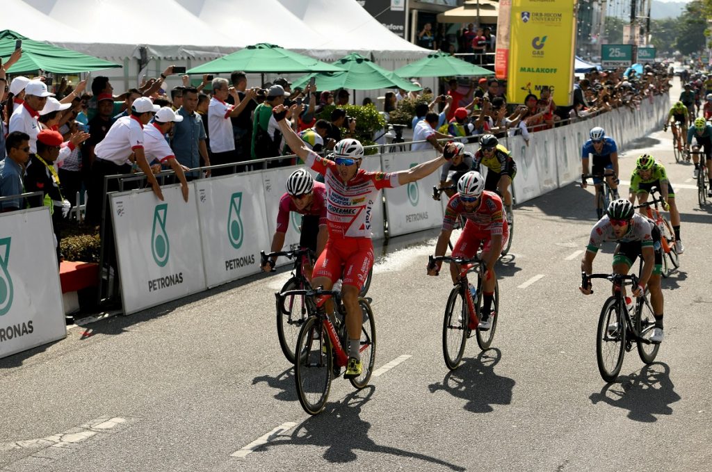 Le Tour de Langkawi – Day 8 LANGKAWI, MALAYSIA – APRIL 13: Marco Benfatto of Androni Giocattoli-Sidermec celebrates victory after winning Stage 8 of the 24th Le Tour de Langkawi 2019, Dataran Lang to Kuah (103,8 km) on April 13, 2019 in Langkawi, Malaysia. pic By Khalid Redza