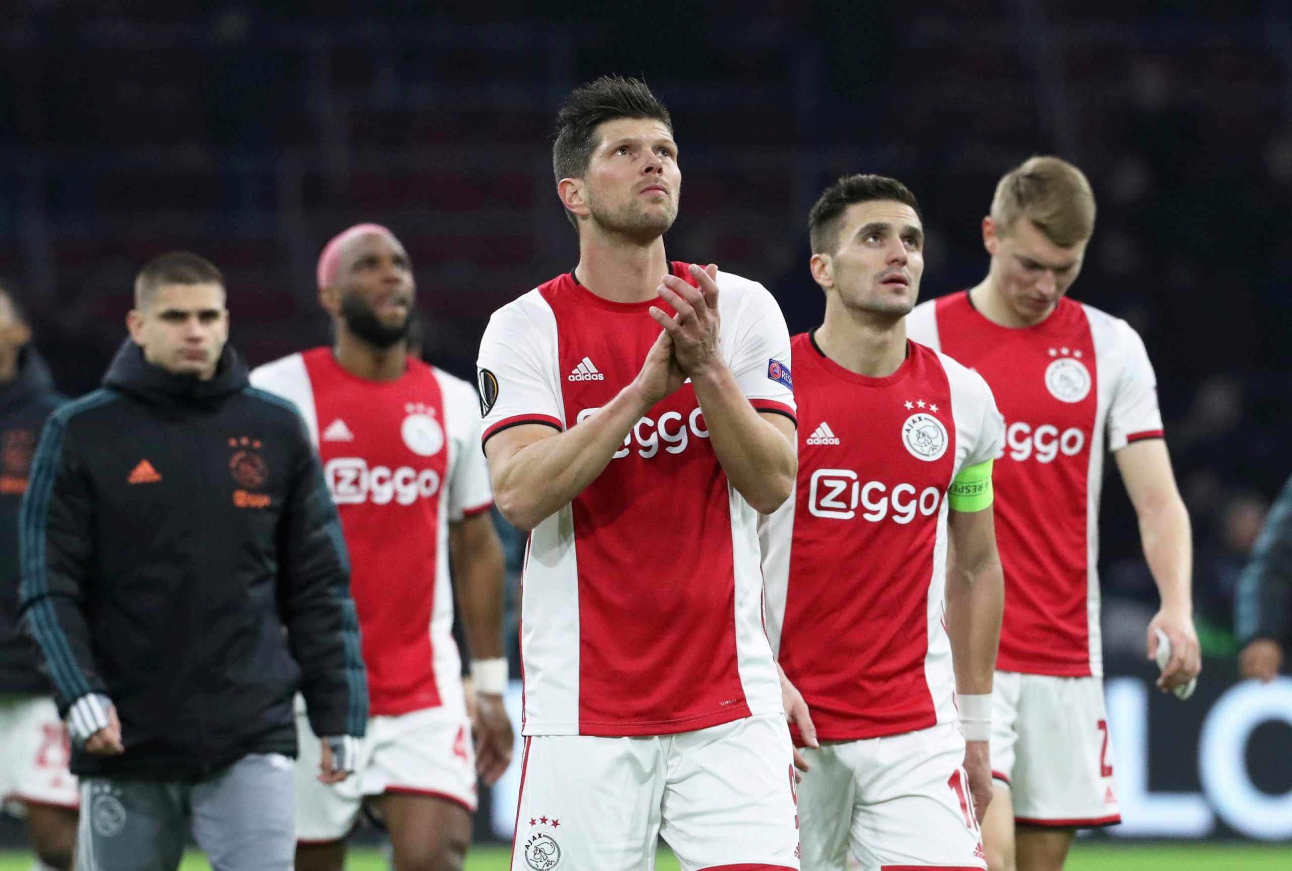 مهاجم آياكس أمستردام الهولندي كلاس يان هونتيلار يحيي الجماهير (رويترز)