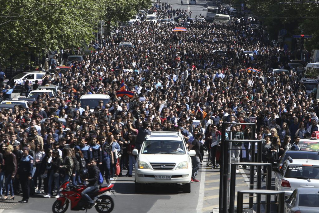 قدَّم رئيس وزراء أرمينيا، سيرج سركيسيان، الإثنين 23 أبريل/نيسان 2018، استقالته تزامناً مع الإافراج عن زعيم الحركة الاحتجاجية نيكول باشينيان،