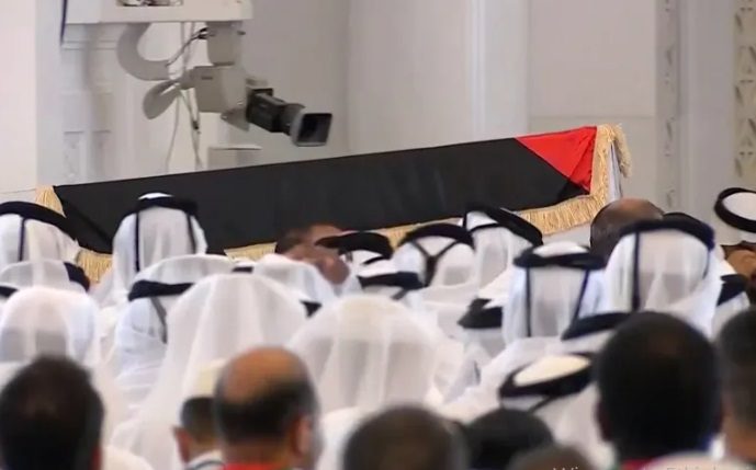 تداول رواد وسائل التواصل الاجتماعي صور أمير قطر الشيخ تميم بن حمد آل ثاني، في صلاة الجمعة التي أعقبها جنازة