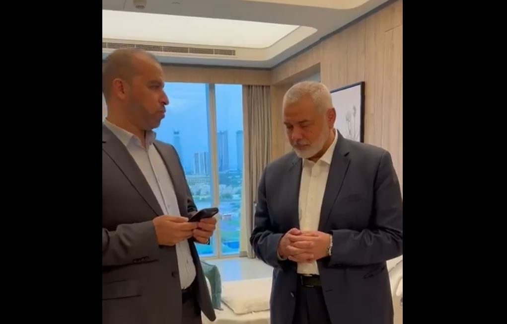 أظهر مقطع فيديو، الأربعاء 10 أبريل/نيسان 2024، لحظة تلقي إسماعيل هنية، رئيس المكتب السياسي لحركة “حماس”، نبأ استشهاد 3 من