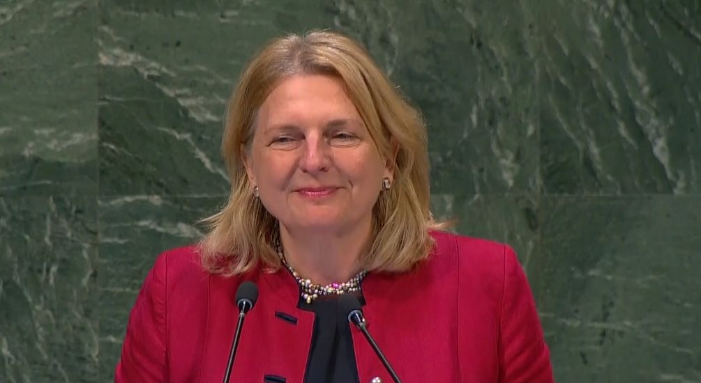 في واقعة قد تبدو غريبة افتتحت وزيرة خارجية النمسا كارين كنايسل خطابها أمام الجمعية العامة للأمم المتحدة السبت 29 سبتمبر/أيلول