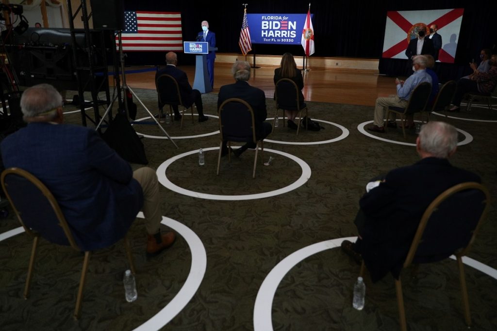 سخر الرئيس الأمريكي دونالد ترامب، الأربعاء 14 أكتوبر/تشرين الأول 2020، من منافسه في انتخابات الرئاسة، الديمقراطي جو بايدن، عبر تغريدة تحمل صورة مركبة لمنافسه على كرسي متحرك في دار لكبار السن، والتي قد تعتبر هجوماً على كبار السن والذين يمثلون قوة تصويتية في البلاد، بعد أن قال بايدن لحشد من كبار السن في ولاية فلوريدا إن الرئيس يعتبرهم “عبئاً” و”يمكن نسيانهم”.