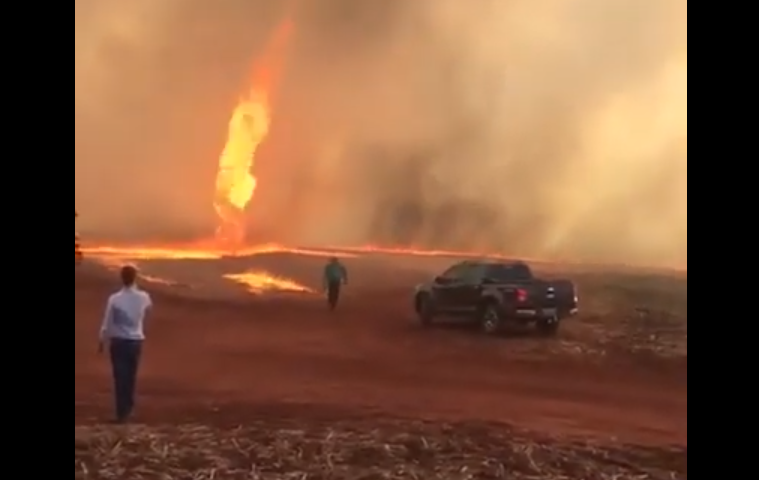 التقطت عدسات الكاميرا صور “إعصار ناري” نادر الحدوث، وهو يرتفع في السماء إلى أكثر من 79 متراً، في حين يلتهم مزرعة بالبرازيل.