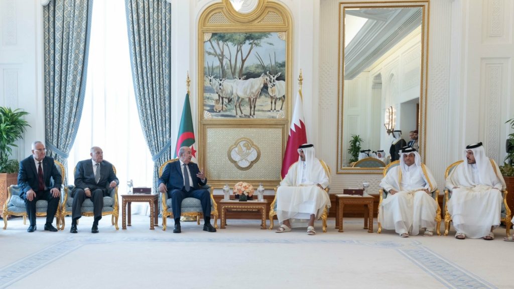 أجرى أمير قطر الشيخ تميم بن حمد آل خليفة ورئيس الجزائر عبد المجيد تبون، في الدوحة الأحد، 16 يوليو/تموز 2023