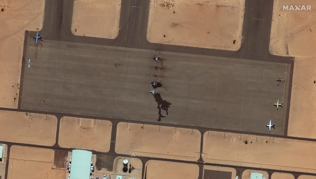كشفت صور ملتقطة بالأقمار الصناعية أن طائرة مصرية على الأقل من طراز ميغ-29 قد دُمّرت في قاعدة مروي الجوية السودانية،