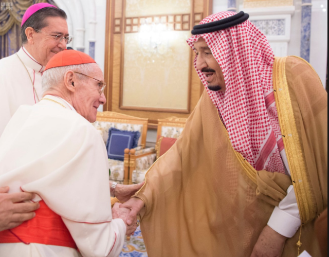 استقبل العاهل السعودي الملك سلمان بن عبدالعزيز، في الرياض، الأربعاء 18 أبريل/نيسان 2018، رئيسَ المجلس البابوي للحوار بين الأديان، الكاردينال