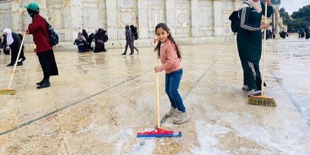 شارك المئات من أبناء مدينة القدس منذ الصباح الباكر، السبت 10 أبريل/نيسان 2021، في حملة تنظيف باحات ومرافق المسجد الأقصى،