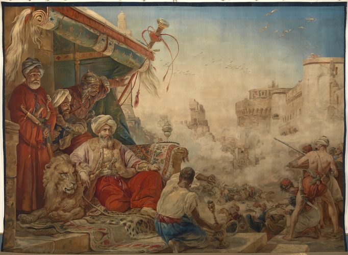 في إحدى صور الملك تشارلز الثالث وزوجته كاميلا، ظهر الاثنان أمام لوحة لما يبدو أنه ملك عربي ومن حوله حاشيته،