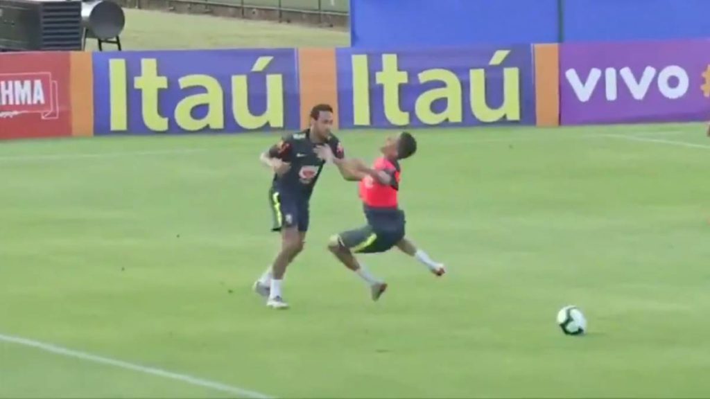 أثار النجم البرازيلي نيمار دا سيلفا غضب جمهور الكرة في البرازيل بسبب تصرفه غير الرياضي مع زميله في المنتخب ايفرتون سوزا مهاجم نادي غريميو البرازيلي