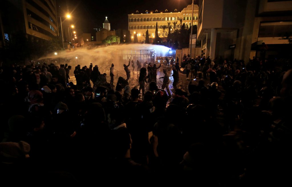مواجهات كر وفر توقع جرحى أمام مقر الحكومة اللبنانية، محتجون اقتربوا من مدخله واصطدموا مع الأمن