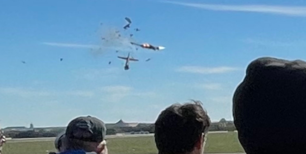 اصطدمت طائرتان أثناء عرض جوي في مدينة دالاس بولاية تكساس الأمريكية وتحطمتا على الأرض، السبت 12 نوفمبر/تشرين الثاني 2022، دون