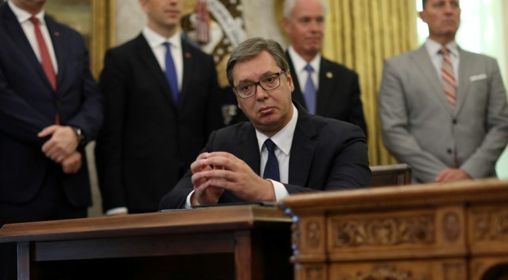 أثار مقطع فيديو للرئيس الصربي ألكسندر فوتشيتش، الكثير من الجدل والتساؤل، وذلك أثناء حضوره مؤتمراً صحفياً مع الرئيس الأمريكي دونالد ترامب ورئيس وزراء كوسوفو، في البيت الأبيض الجمعة 4 سبتمبر/أيلول 2020.